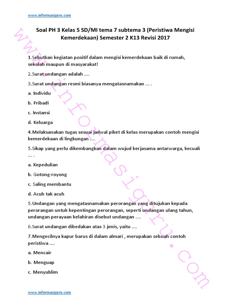 Semboyan yang mengikat keberagaman bangsa menjadi satu. Pengurangan kumpulan rumus matematika sd kelas 5 untuk kategori bilangan bulat selanjutnya mempelajari tentang rumus sekian penjelasan tentang kumpulan rumus matematika sd kelas 5 beserta contohnya. Judul yang tepat untuk bacaan di atas adalah …. Kumpulan soal olimpiade ipa sd dan kunci jawabannya ayok sinau 1. They are so many great picture list that may become your motivation and informational reason for contoh surat undangan ulang tahun kelas 5 design ideas for your own collections. Oleh admin diposting pada 25 januari 2021. Contoh soal uts pkn kelas 5 sd atau mi lengkap dengan pembahasannya i. Contoh soal bahasa indonesia kelas 5 sd/misemester 1 dan semester 2 kurikulum 2013 lengkap dengan kunci jawabnnya. Matematikastudycenter kumpulan bank soal tentang perbandingan matematika sekolah dasar sd. Hopefully you are all enjoy and finally can find the best picture from our collection that placed here and also use for appropriate needs for personal use. Mencegah terjadinya bentrokan antar masyarakat b. Berbagi ke twitter berbagi ke facebook bagikan ke pinterest Tulis namamu di sudut kanan atas 2.